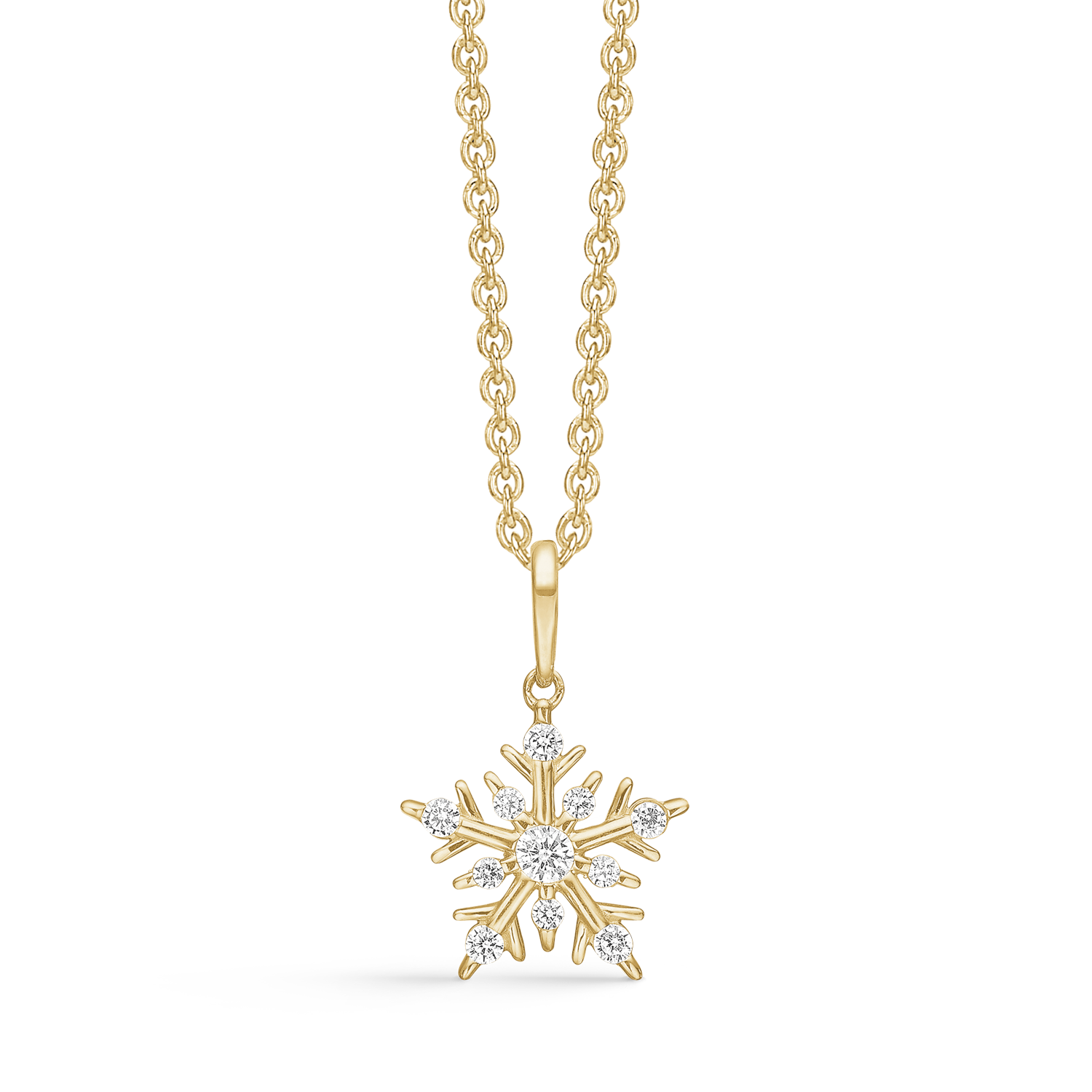 14 kt. guld snöflinga halsband med facetterade zirkoner.