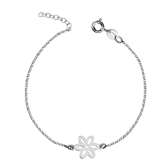 Armband i silver med blomhänge 17-20 cm. Armbandet är tillverkat av 925 sterling silver, som är belagd med ett lager av rodium och är polerat. Armbandet är belagt med Rhodium vilket gör att armbandet har en blank yta och ser ut som vitguld. Inkl. GRATIS smyckeskrin ✓