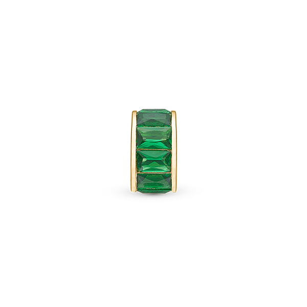 Grön baguetteberlock i guldpläterad är dekorerad med 10 gröna baguetteslipade CZ. Om du letar efter ett smycke med gröna stenar, då är Gröna Baguette-berlocken precis något för dig. Grön baguetteberlock passar endast klassiska och 3-strängade läderarmband.