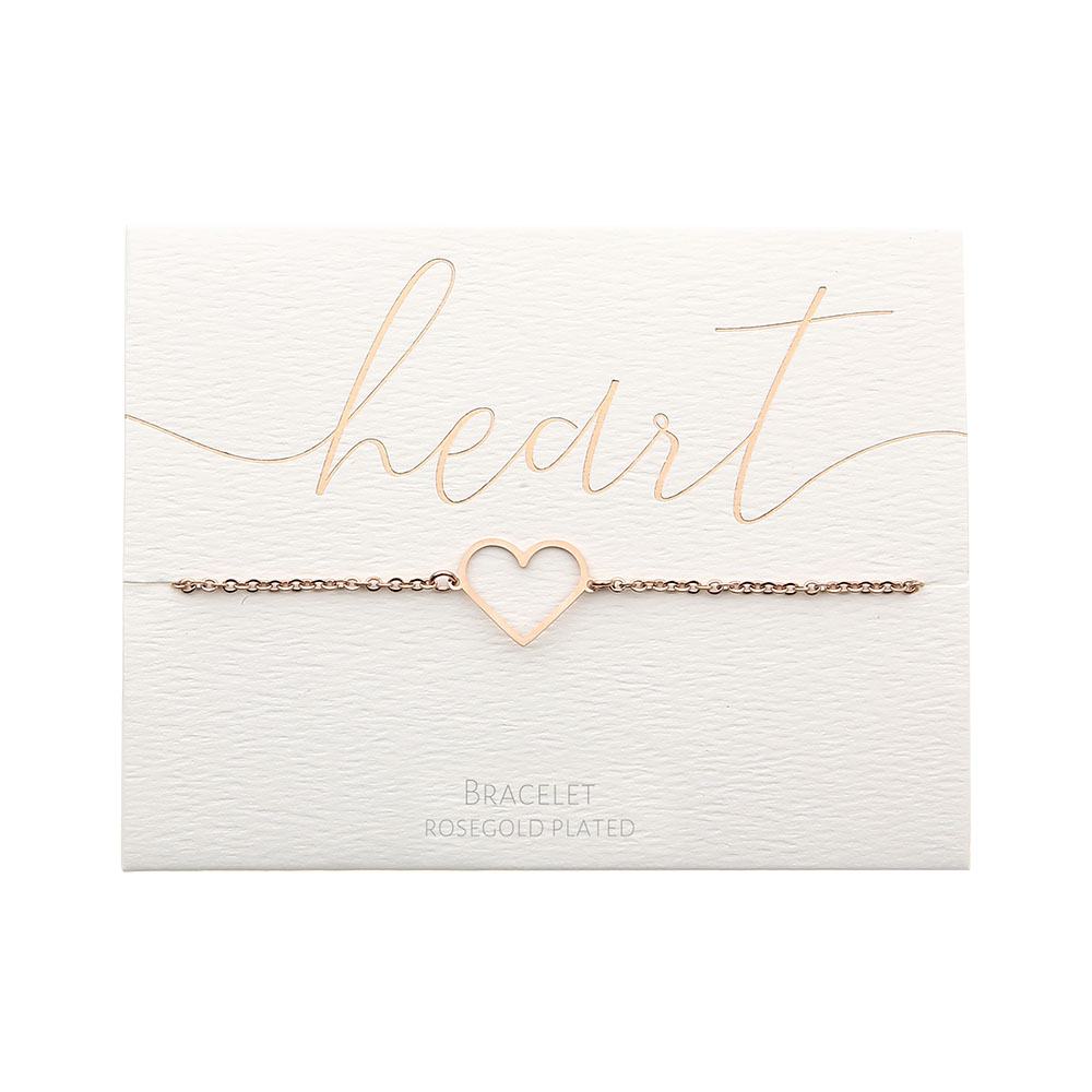 Hjärtarmband i roséguld 17+3 cm Denna serie består av armband med den mycket populära Heart-designen. Vi förstår att designen är väldigt populär! Hjärtdesignen är tidlös och elegant och har samtidigt en vacker symbolisk betydelse. Smycket är tillverkat av rostfritt stål och pläterat med roséguld. 4 briljanta fördelar med rostfritt stål: ✔ Rostar inte ✔ Missfärgas inte ✔ Skadar inte av på huden ✔ Vattentålig
