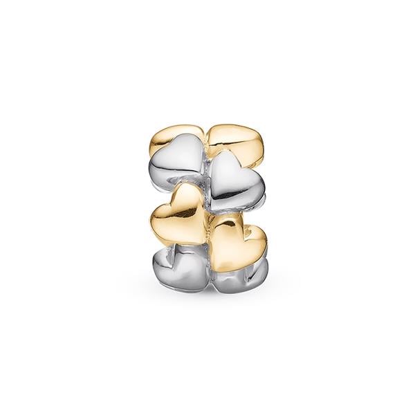 Romantisk charm som med små fina hjärtan tillsammans bildar en vacker charm. Hjärtan & Love in bicolor har en blandad design bestående av både silver och guldpläterat silver. Hjärtan & Love är perfekt för dig som letar efter en berlock som kan pryda ditt CHRISTINA silverarmband eller Slim läderarmband med lite kärlek. Denna berlock passar till CHRISTINA’S Slim läderarmband och Silverarmband.