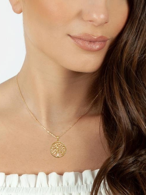 Tree of life halsband 18 karat guldpläterat Halsband med den mycket populära designen av livets träd. Vi förstår att designen är väldigt populär! Livets träd är tidlöst och elegant och har samtidigt en vacker symbolisk betydelse. Pjäsen är guldpläterad med 18 karats guld.