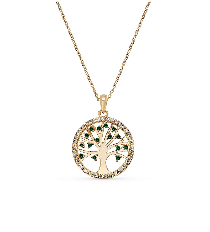 Tree of life halsband 18 karat guldpläterat med zirkonstenar – 45 CM Halsband med den mycket populära designen av livets träd. Vi förstår att designen är väldigt populär! Livets träd är tidlöst och elegant och har samtidigt en vacker symbolisk betydelse. Halsbandet Livets träd är designat i guldpläterat 18 karat guld. På livets träd hittar du eleganta zirkonstenar i vitt och grönt.
