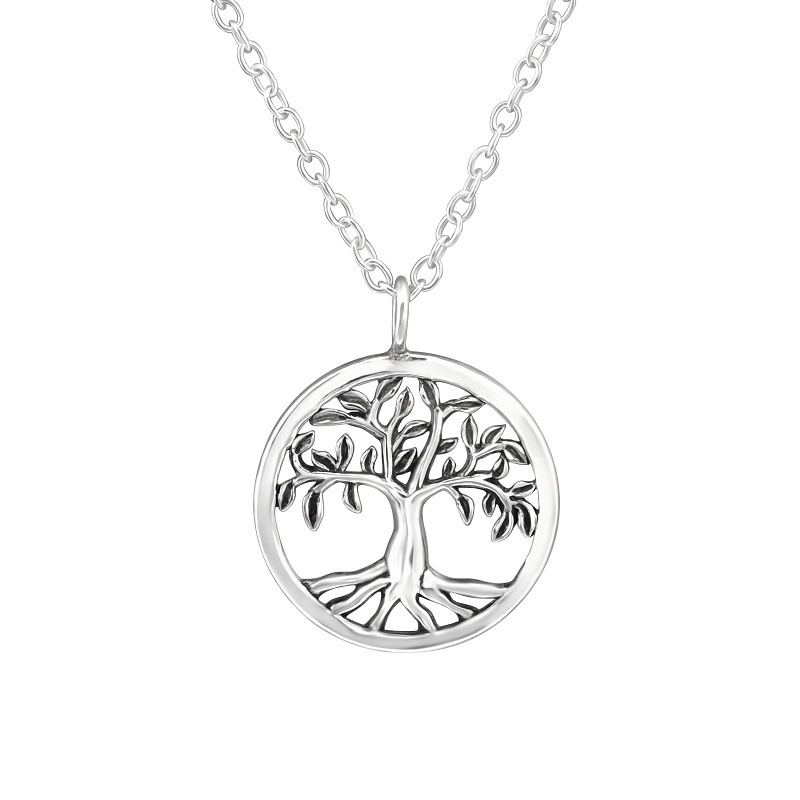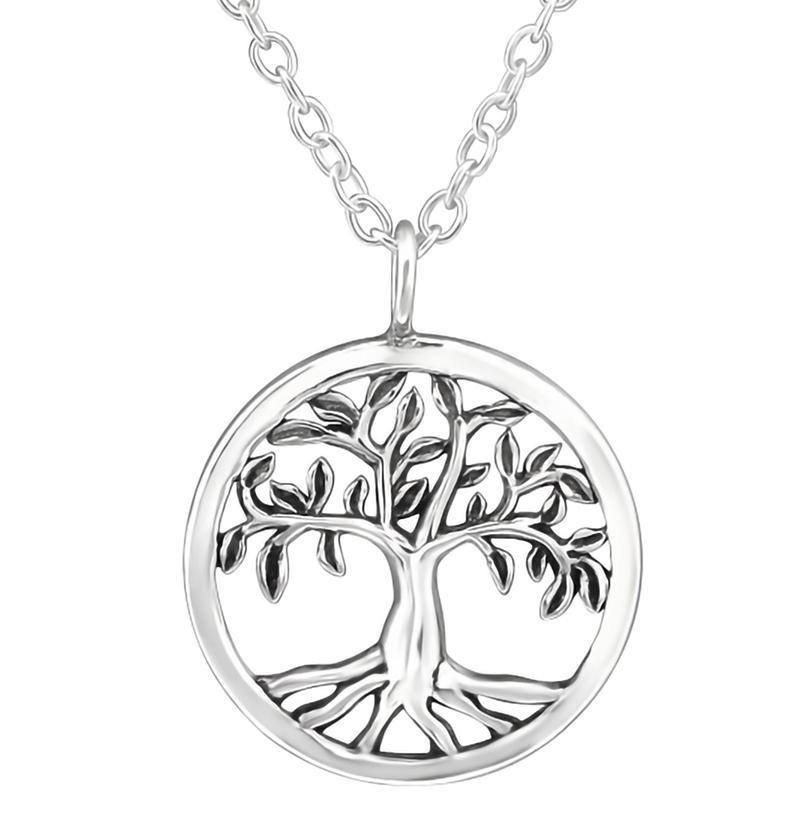 Tree of Life-halsband i silver – 45 cm Söt och elegant Tree of Life-halsband i silver. Halsbandet är gjort av 925 sterling silver och pläterat med silver i en 999-kvalitet. Halsbandet har också polerats och oxiderats. Det är oxidationen som ger de mörka nyanserna. Vi tycker själva att samspelet mellan de mörkt oxiderade nyanserna och den polerade ytan ger halsbandet en helt unik look. Halsbandet Livets träd har en kedjelängd på 45 cm. Kedjans diameter är 1 mm. Diametern på livets träd är: Ø13 mm Inkl. GRATIS smyckeskrin ✓