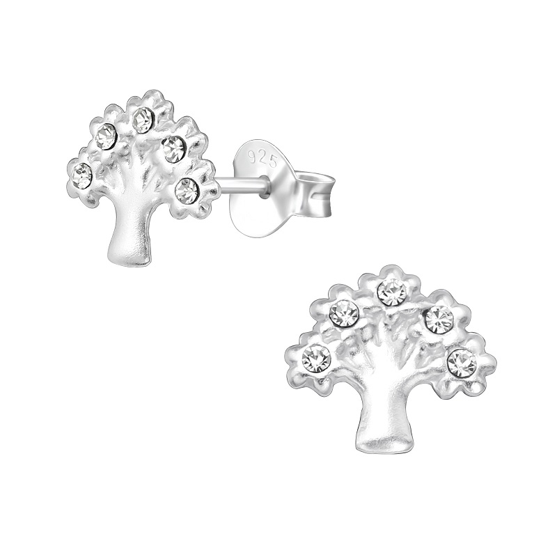 Livets träd örhängen i silver & med sten – Ø8 mm Livets träd Örhängena är gjorda av 925 sterling silver. Öronpropparna har belagts med 999 silver, som har polerats. Ett glansigt lack både skyddar smyckets yta mot missfärgning och ger en läcker glansig look. Örhängena är dekorerade med hela 10 äkta Zirconia stenar. Livets träd har en diameter på Ø8