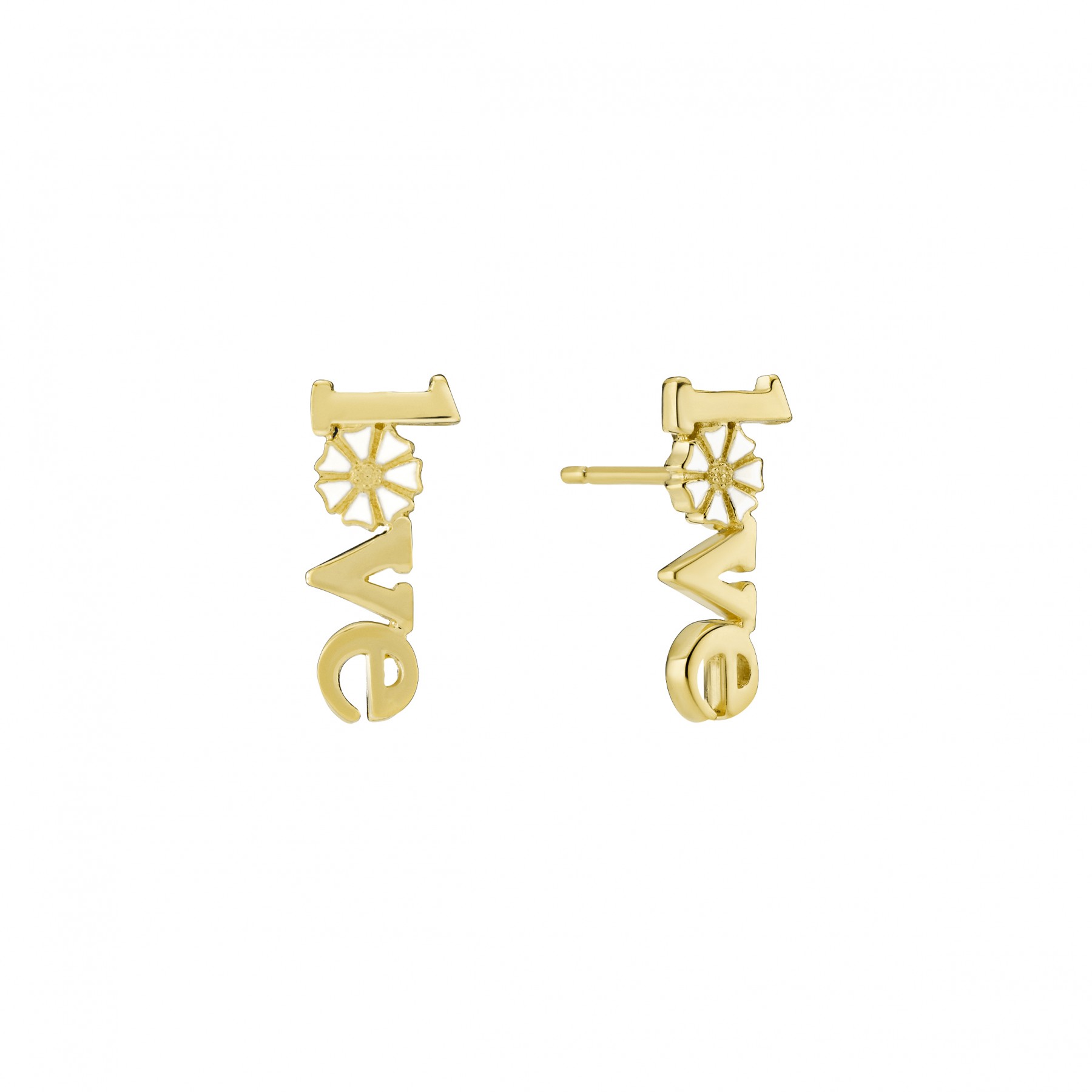 Marguerite örhängen 5 mm love 24kt guldpläterad vit emalj 925