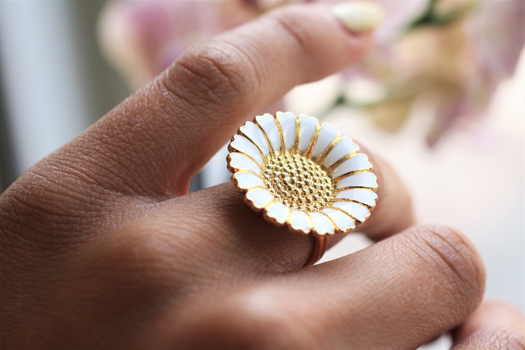 MARGUERIT-RING-25MM-FORGYLDT-MED-HVID-EMALJE