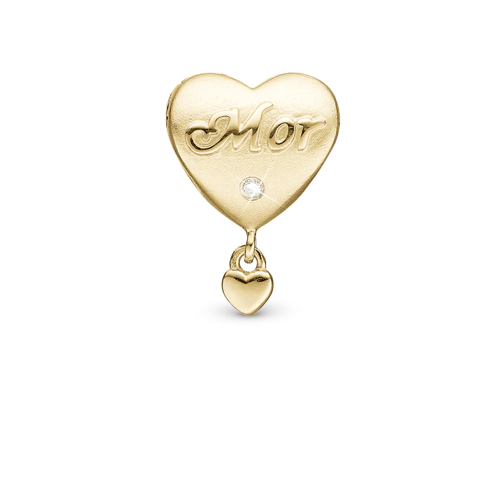 Elegant moderberlock i guldpläterat silver med ett delikat hängande hjärta och en äkta topas. Perfekt för en mamma som jobbar hårt och nu förtjänar en vacker personlig present. Alla mammor förtjänar lite bortskämd. Denna berlock passar till CHRISTINA’S Slim läderarmband och Silverarmband.
