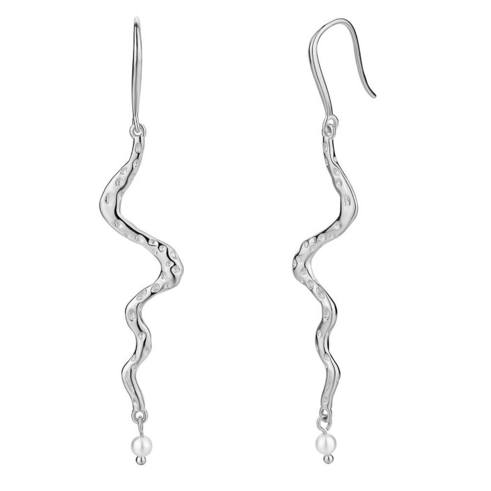Alana Earrigns är ett större, längre örhänge, med förtrollande vågiga detaljer och en fin liten akvamarinpärla. Örhänget ger ett magiskt uttryck, och är det perfekta örhänget för att piffa upp vilken outfit som helst. Alana örhängen är en del av vår sjöjungfrukollektion, som är inspirerad av den magiska, lekfulla och förtrollande berättelsen om sjöjungfrur. Säljes som ett par. Material: 925 sterling silver.Storlek: 6,5 cm Färg: Silver.