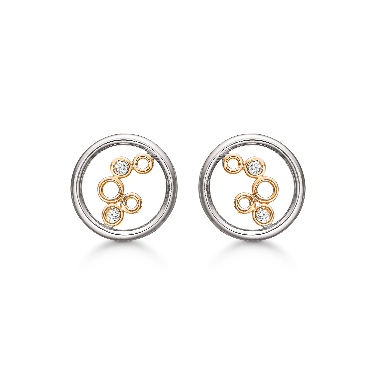 Öronproppar i silver rodiumpläterade/guldpläterade cirklar med facetterad zirkon.