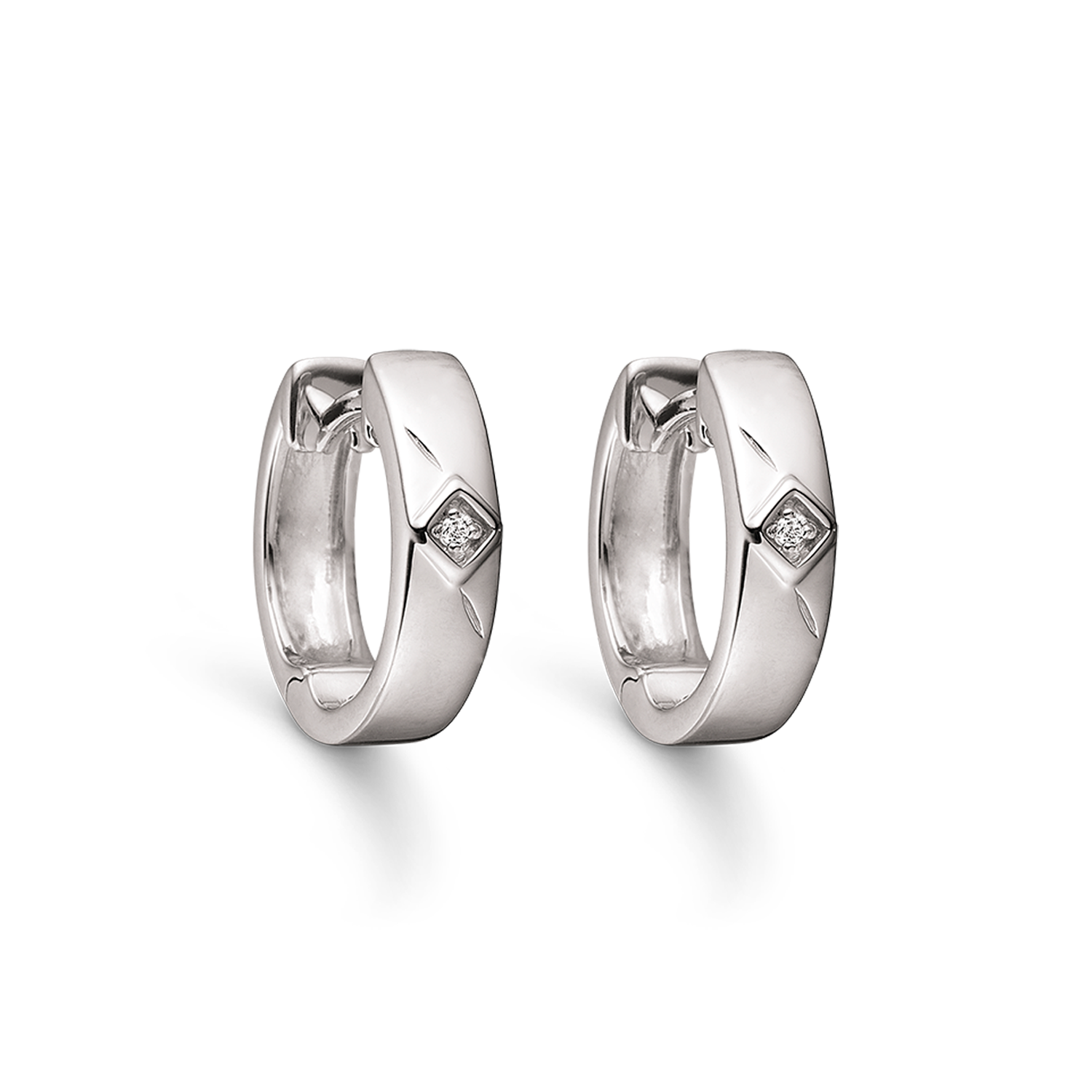 Bågar i silver, med vita ädelstenar. Ø14 mm