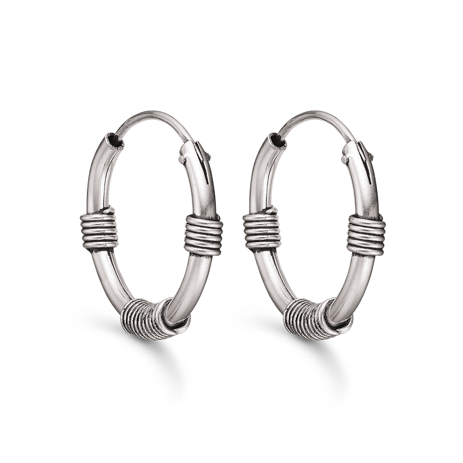 • Båglar i silver som har fått oxiderade effekter