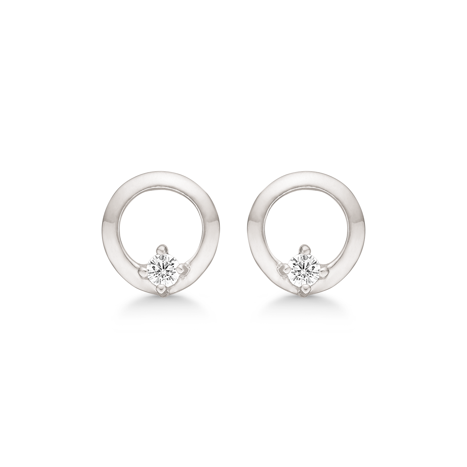 Silverörhänge rodiumpläterad cirkel med facetterad zirkon. Mät 10 mm.