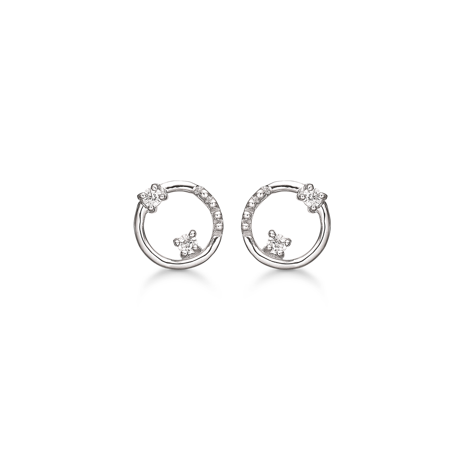 Silverörhänge rodiumpläterad cirkel med prickar och 2 facetterade zirkoner.