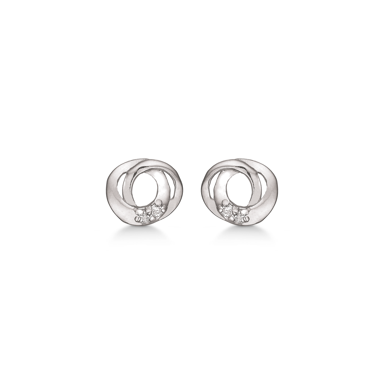 Silver öronproppar rodiumpläterade 2 cirklar sammanflätade med 2 facetterade zirkoner i botten.