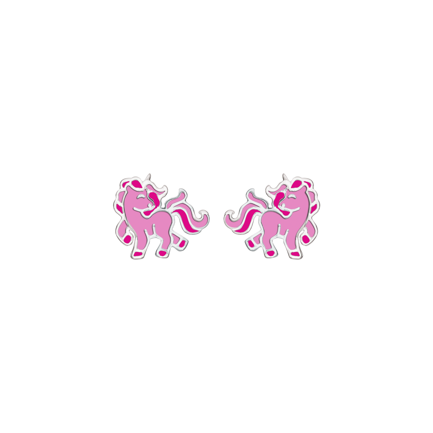 Enhörningsörhängen i silver med rosa blyfri emalj.