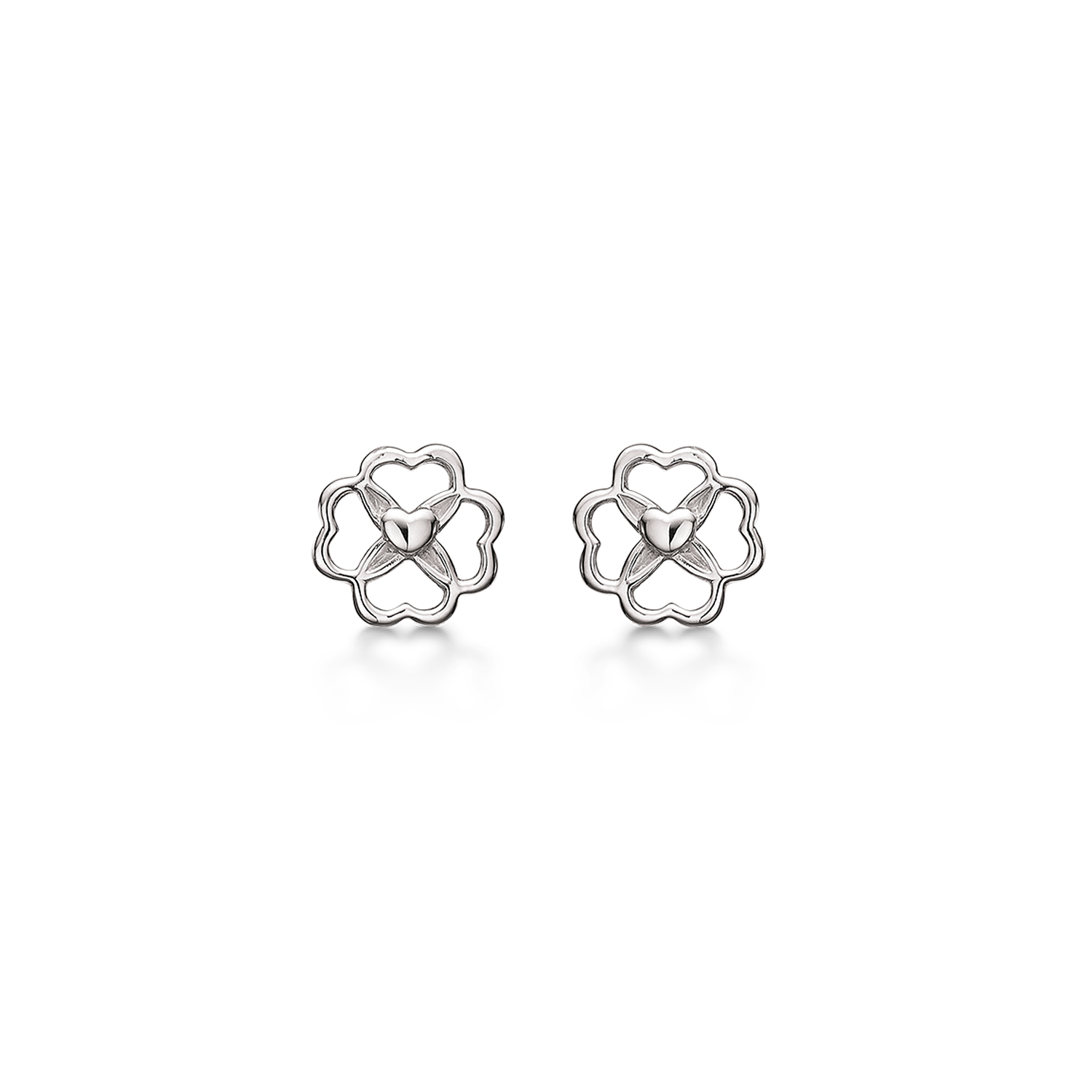Silverörhänge rodiumpläterad blomma av hjärtan med 4 hjärtan