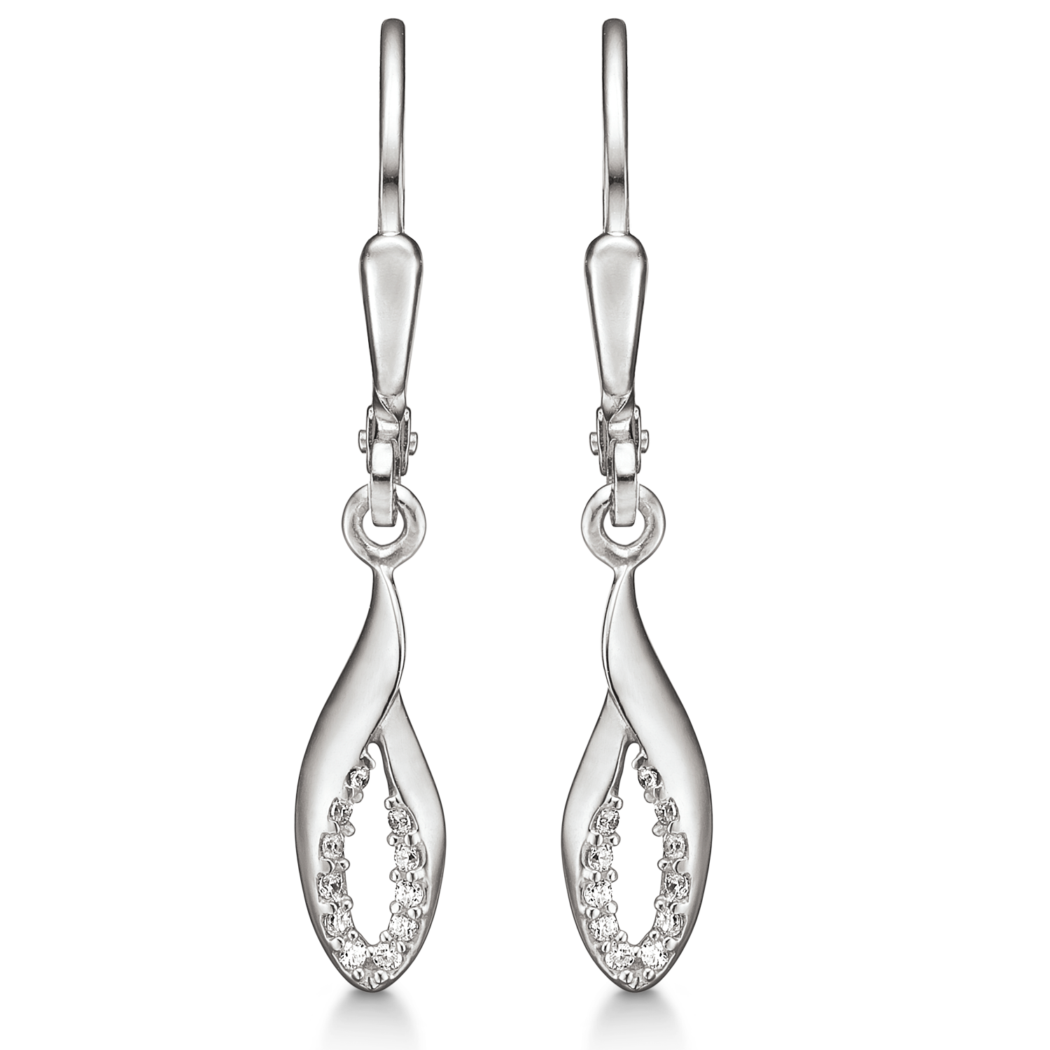 Klassiska dinglande örhängen i silver, med vita stenar
