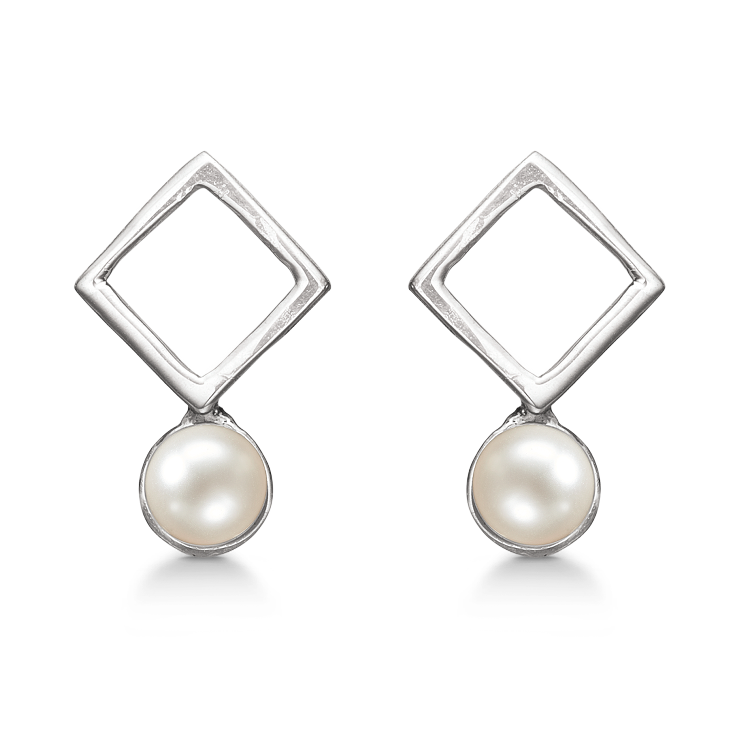 Örhängen i matt silver, Fyrkantiga med sötvattenspärlor.