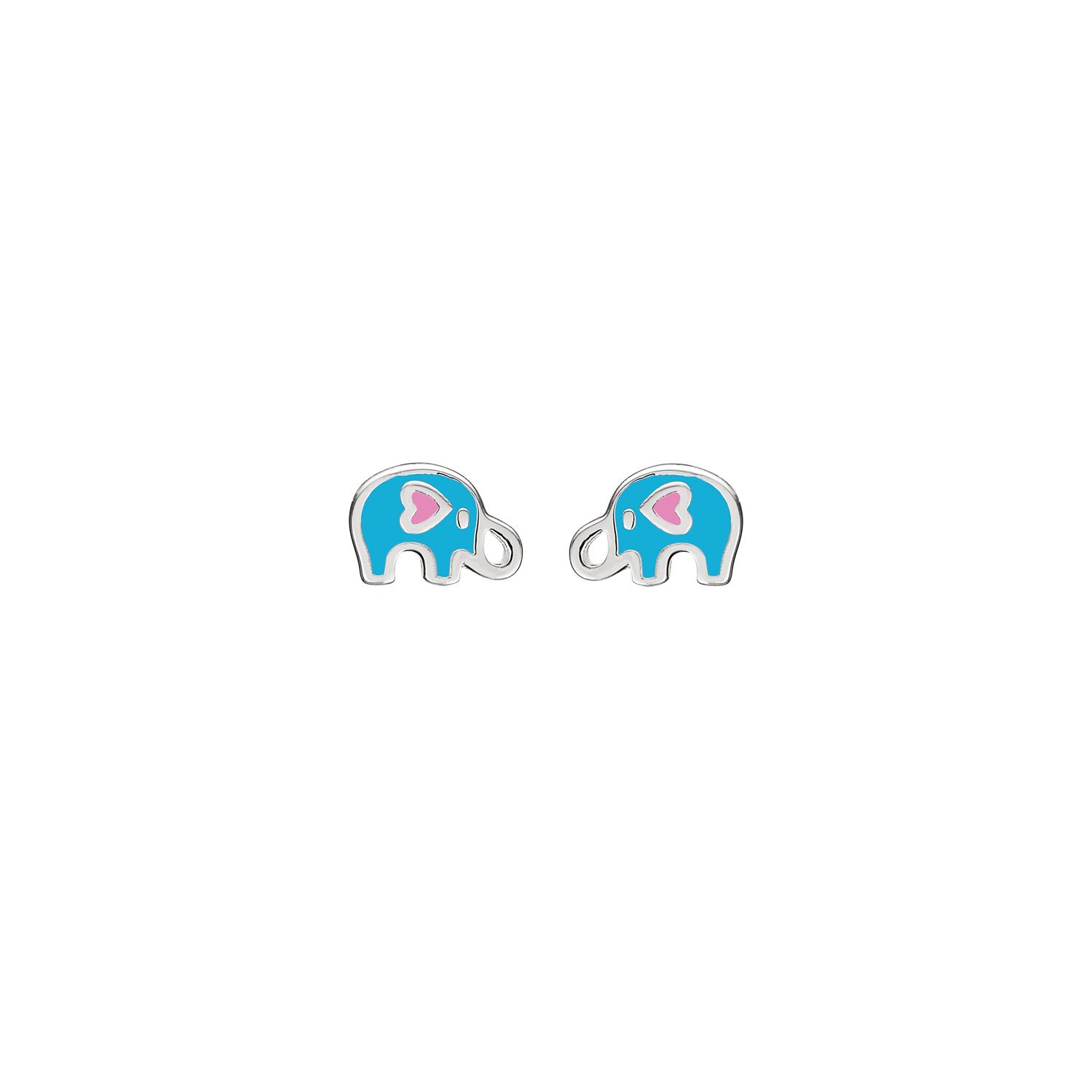 Silverörhängen elefant med hjärta i ljusblått och rosa blyfri emalj.