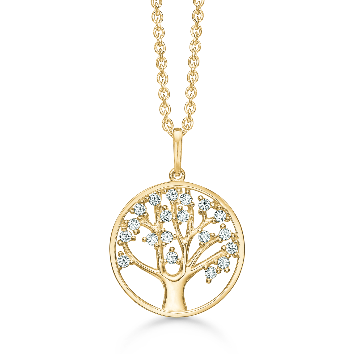 Støvring life’s tree Guldhalsband 14 karat med Zirconia 42-45 cm Life’s tree Halsband i guld, från danska Støvring. Själva kedjan är i silver, pläterad med 14 karats guld. Hänget är i 14 karat guld och belagt med vackra Zirconia stenar. Halsbandet har en längd på 42-45 cm.