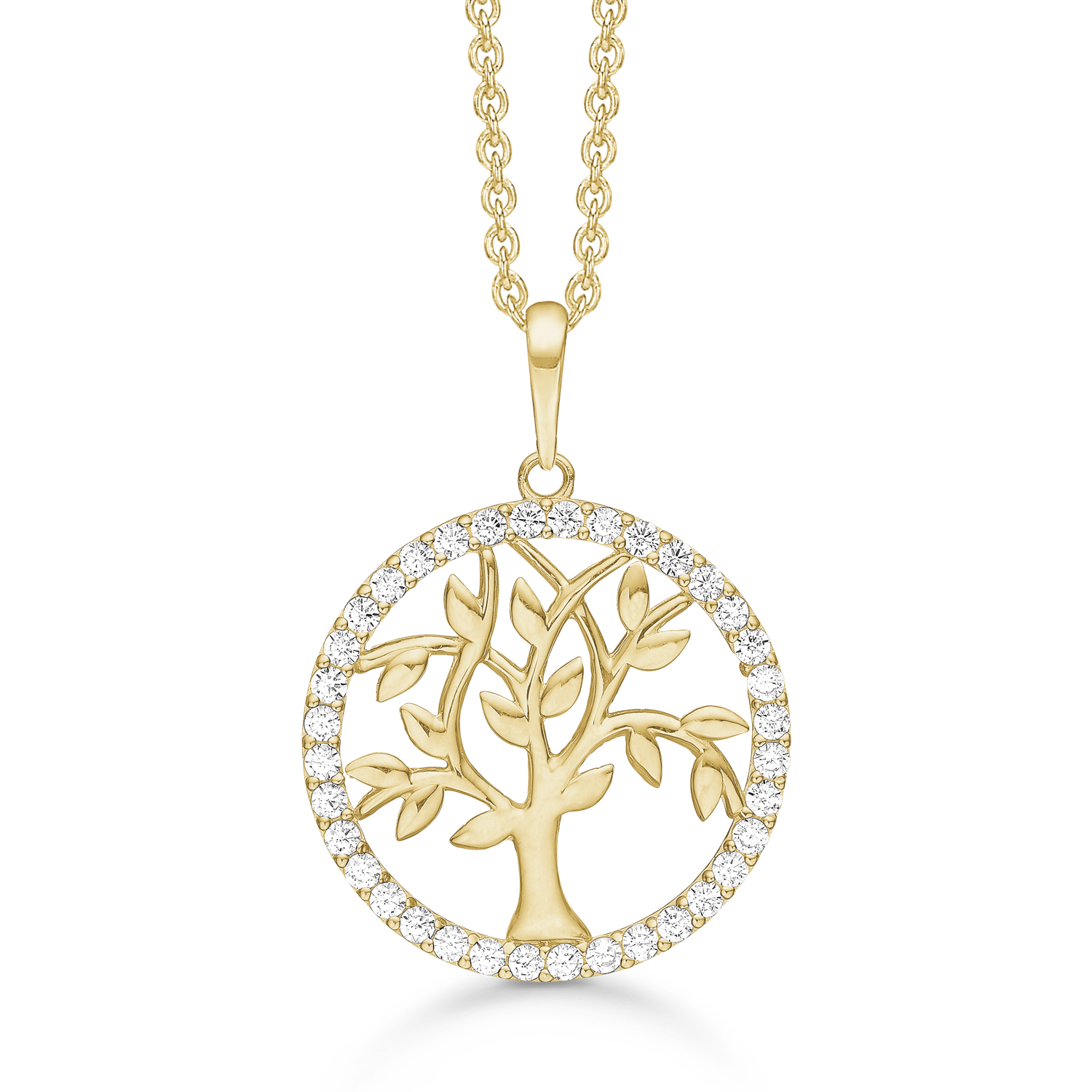 Støvring life’s tree Guldhalsband 8 karat med Zirconia 42-45 cm Life’s tree Halsband i guld, från danska Støvring. Själva kedjan är i silver, pläterad med 8 karats guld. Hänget är i 8 karat guld, täckt med vackra Zirconia stenar. Halsbandet har en längd på 42-45 cm.
