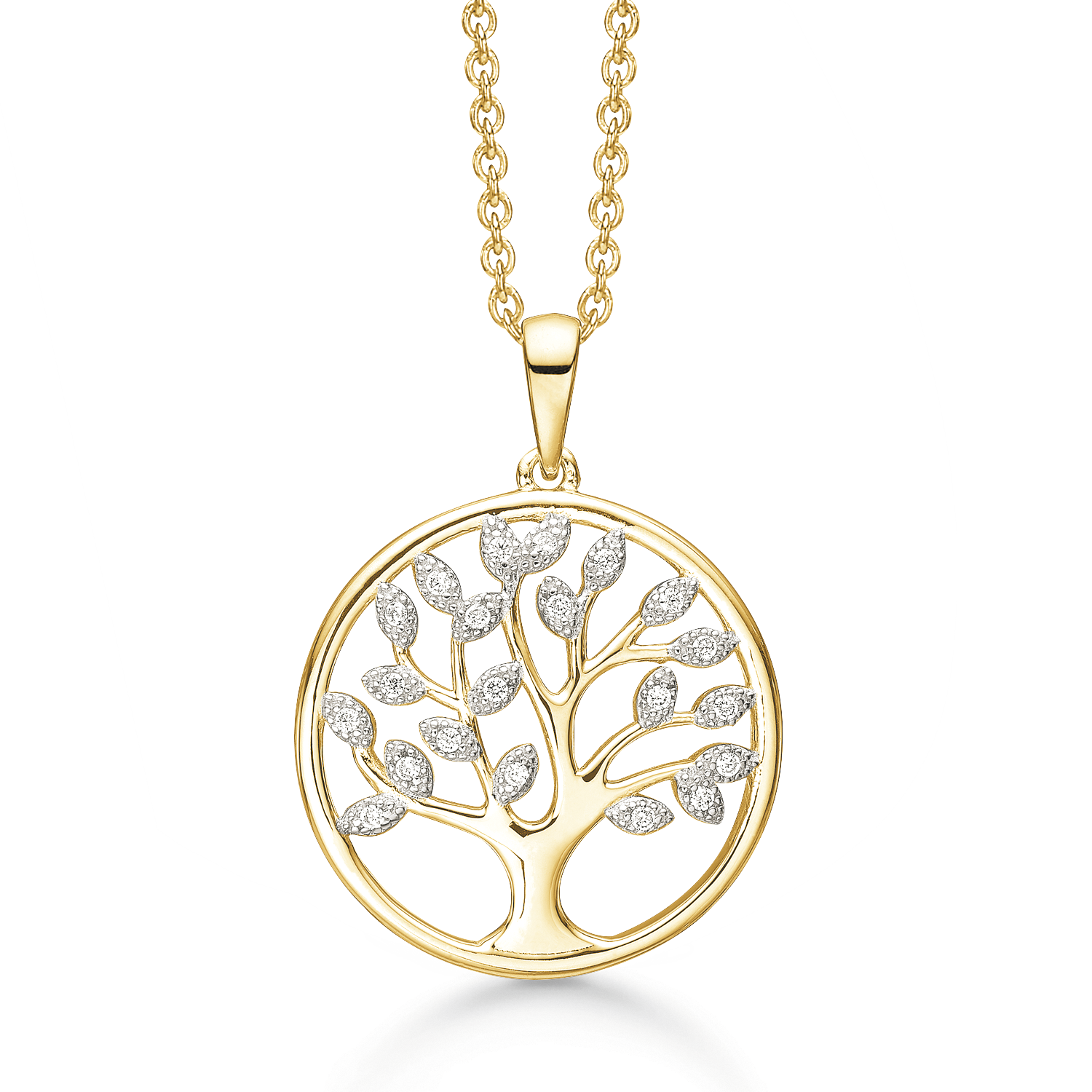 Støvring livets trädhalsband i guldpläterat silver med zirkonstenar – 42-45 cm Livets träd Halsband i guldpläterat silver, från danska Støvring. Halsbandet har blankpolerats Ett glansigt lack både skyddar smyckets yta mot missfärgning och ger en läcker glänsande look. Hänget är dekorerat med zirkonstenar. Halsbandet har en längd på 42-45 cm. Hänge: Ø20 mm