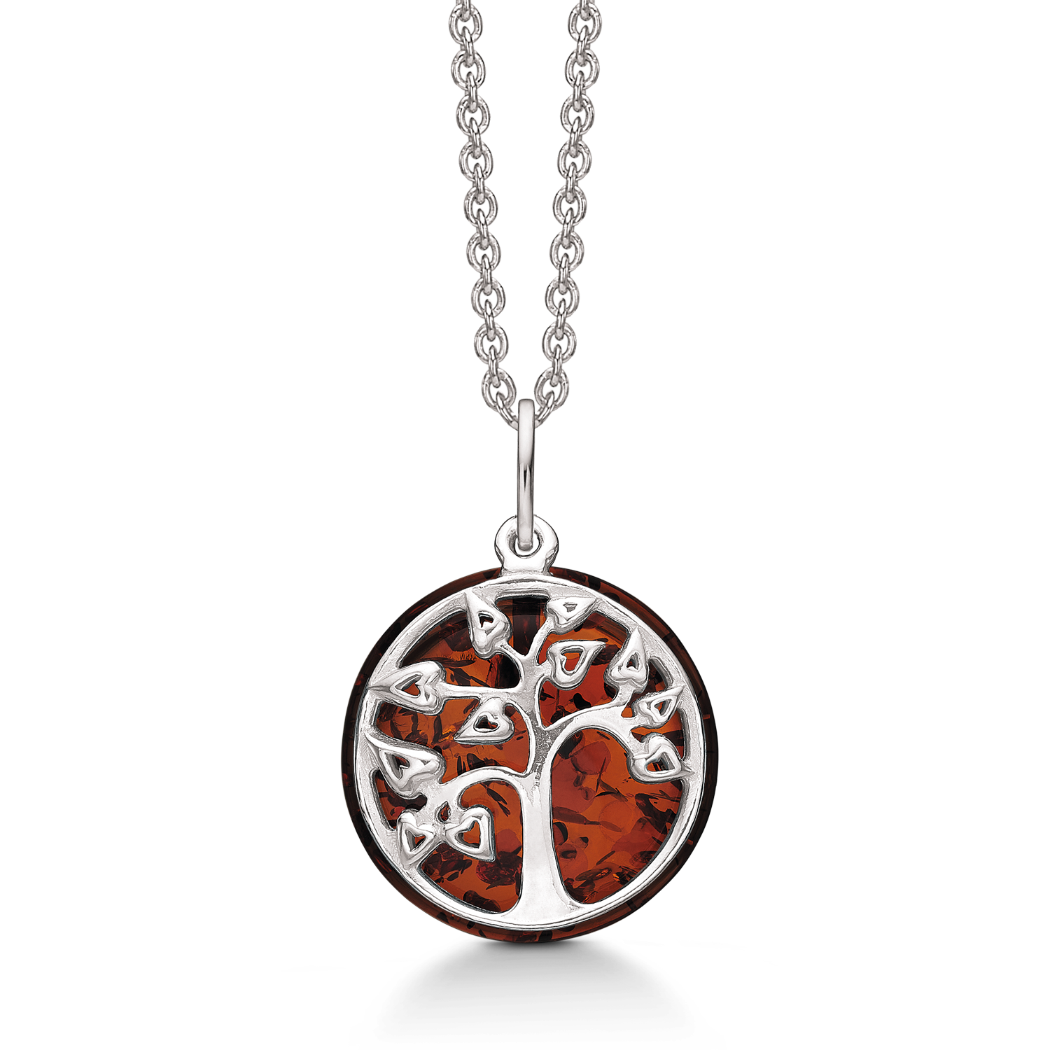 Støvring livets trädhalsband i silver, med bärnsten – 42-45 cm Halsbandet livets träd i silver, från danska Støvring. Halsbandet är designat med bärnstensfärgad bakgrund. Halsbandet är belagt med skyddande rodium. En rodiumbeläggning ger pjäsen en glänsande yta och ett utseende som vitt guld. Dessutom ger en rodiumbeläggning också fördelen att smyckena inte missfärgas och gör ytan mer hållbar. Halsbandet har en längd på 42-45 cm