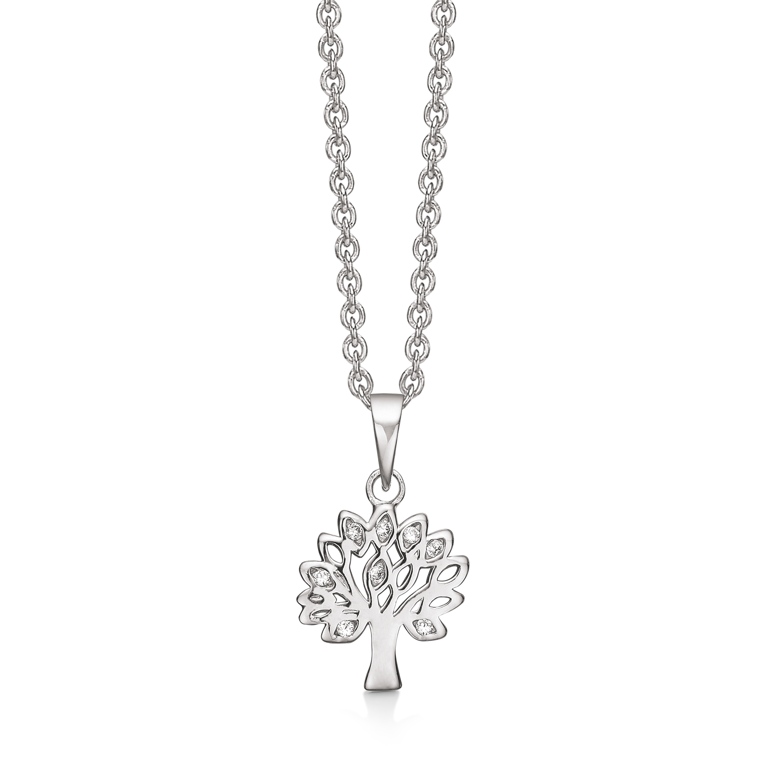 Støvring livets träd Halsband i silver, med zirkonstenar – 42-45 cm Livets träd Halsband i silver, från danska Støvring. Halsbandet är belagt med skyddande rodium. En rodiumbeläggning ger pjäsen en glänsande yta och ett utseende som vitt guld. Dessutom ger en rodiumbeläggning också fördelen att smyckena inte missfärgas och gör ytan mer hållbar. Hänget är dekorerat med zirkonstenar Halsbandet har en längd på 42-45 cm.