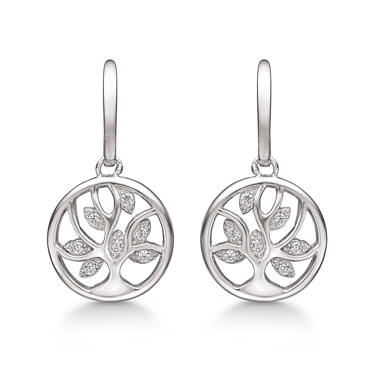 Støvring tree of life dinglar örhängen i silver, med zirkonstenar Tree of life dinglar örhängen i 925 sterling silver, från danska Støvring. Livets träd dinglar örhängen är pläterade med rodium. En rodiumbeläggning ger pjäsen en glänsande yta och ett utseende som vitt guld. Dessutom ger en rodiumbeläggning också fördelen att smyckena inte missfärgas och gör ytan mer hållbar. Livets träd-örhängen är dekorerade med zirkonstenar