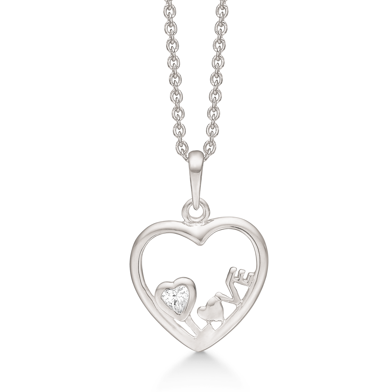 Støvring hjärta/Kärlek halsband i silver med zirkonstenar 42-45 cm Hjärta/kärlek halsband i Silver. Dansk design från Støvring design. Hjärthalsbandet är gjort av 925 sterling silver. Är belagd med rodium vilket skyddar ytan mot slitage och ger en fin blank silveryta Hjärthänget är dekorerat med 1 st vit zirconia sten Kedjan har en justerbar längd på 42-45 cm vilket ser till att kedjan passar alla.