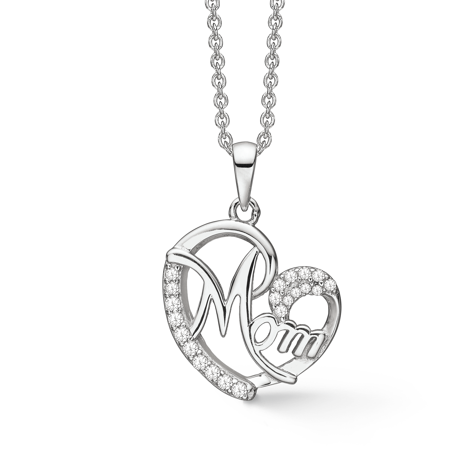 Støvring hjärta/Mamma halsband i silver med zirkonia stenar 42-45 Hjärta/mamma halsband i Silver. Dansk design från Støvring design. Hjärt-/mammahalsbandet är gjort av 925 sterling silver. Är belagd med rodium vilket skyddar ytan mot slitage och ger en fin blank silveryta Hjärthänget är dekorerat med vita zirconia stenar Kedjan har en justerbar längd på 42-45 cm vilket ser till att kedjan passar alla .