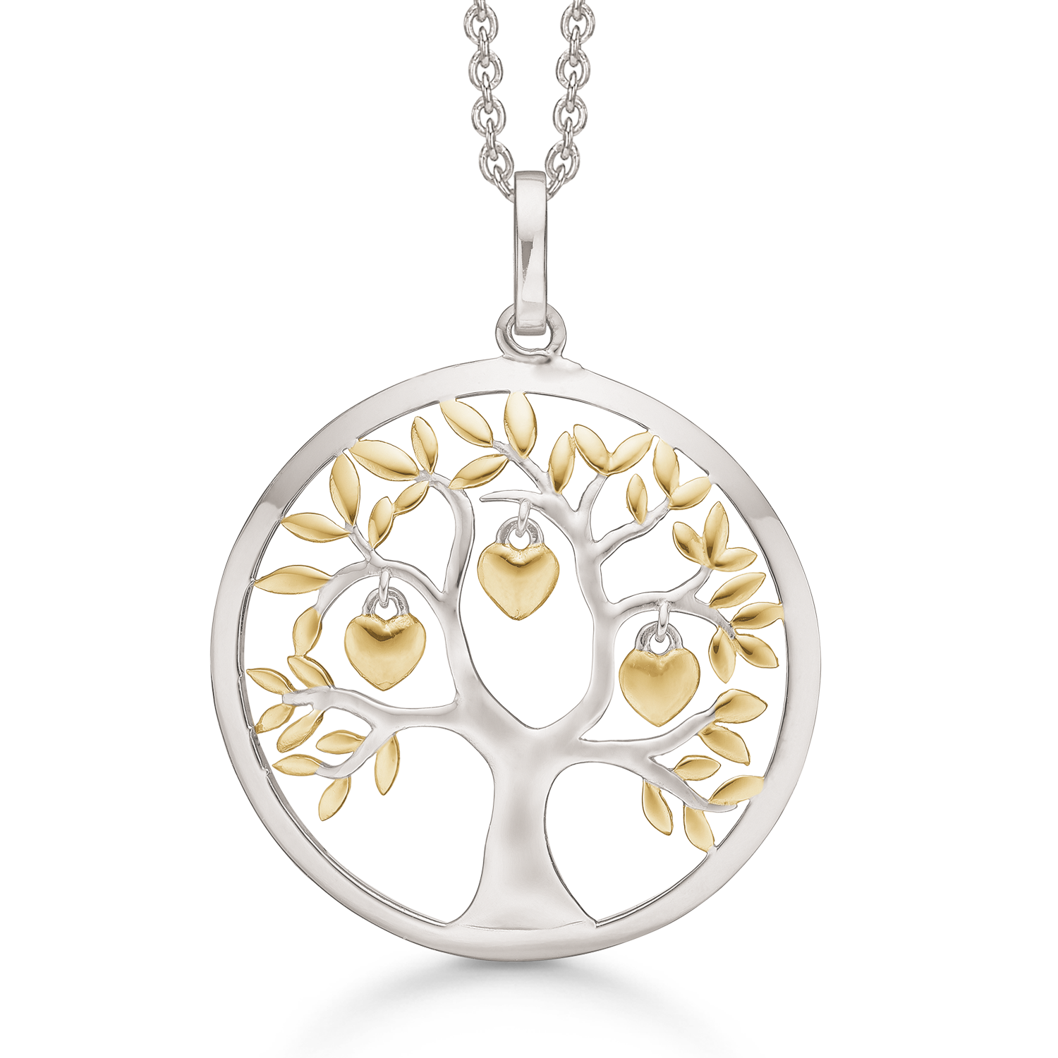 Støvring livets träd Halsband i silver och förgyllning – 42+5 cm Livets träd Halsband i silver, från danska Støvring. Silverdelen av hängsmycken är belagd med skyddande rodium. Gulddelen är guldpläterad 18 karat, som är polerad. Ett glansigt lack både skyddar smyckets yta mot missfärgning och ger en läcker glänsande look. Halsbandet har en längd på 42-45 cm.