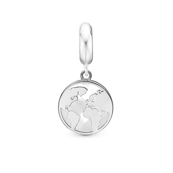 Världspärlemor för smalt läderarmband och silverarmbandsberlock är gjorda i 925 sterling silver med den finaste pärlemordetaljen. The World charm är en vacker symbol för hur vacker världen kan vara. Smyckena är perfekta för dig som gillar att resa, men också för dig som älskar jordens varelser. Världens pärlemor passar till silverarmband och slimmade läderarmband, men även som hängsmycke till dina halsband.