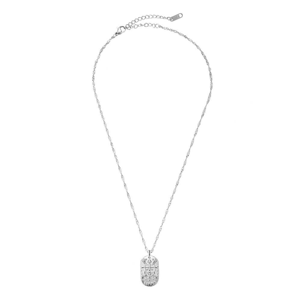 Zodiac halsband Vågen silverpläterad med zirconia stenar 40+7 cm Halsband med Vågen stjärntecken. Stjärnteckenhalsbandet med Vågen är designat i rostfritt stål, som tål vatten och är ett extremt slitstarkt material. Ytan är polerad, med små matta detaljer vilket vi tycker ger ett otroligt snyggt utseende. Hänget har en rektangulär form och är dekorerad med vita zirkonstenar, som glittrar vackert, som små stjärnor. Kedjan har en längd på 40 cm och kan justeras med + 7 cm. Zodiac-hänget mäter 20×13 mm
