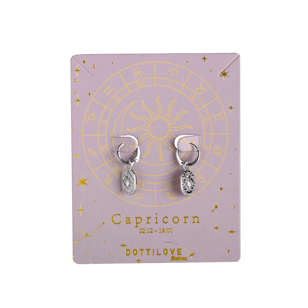 Stjärntecken Örhängen Stenbocken Vitguld pläterade med zirkonstenar Örhängen med Stenbockens stjärntecken. Stjärnteckensörhängena med Stenbocken är designade i koppar, som tål vatten och är ett extremt slitstarkt material. Ytan är polerad, med små matta detaljer vilket vi tycker ger ett otroligt snyggt utseende. Hänget har en rektangulär form och är dekorerad med vita zirkonstenar, som glittrar vackert, som små stjärnor.